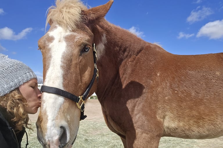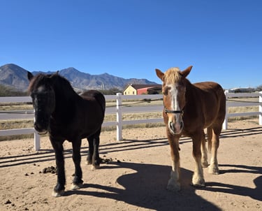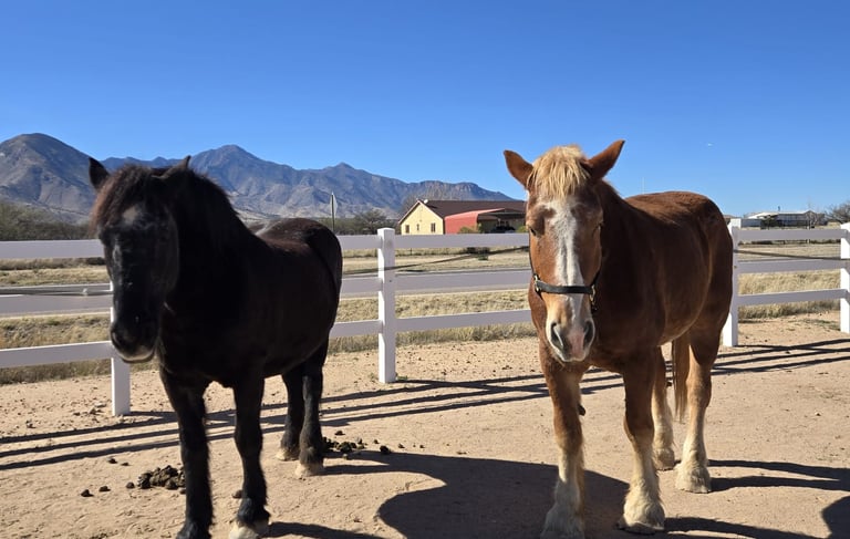 After a short exchange of texts, Chrystal and her husband, Jerry, made the 2 1/2 hour drive from their home south of Tucson to take a look at Widow and Armani. It didn’t take me long to see that Chrystal’s love affair with draft horses was genuine. I had been cautioned to be on the lookout for unscrupulous would-be adopters interested only in selling the horses to slaughter. Chrystal and Jerry dispelled my fears in short order.